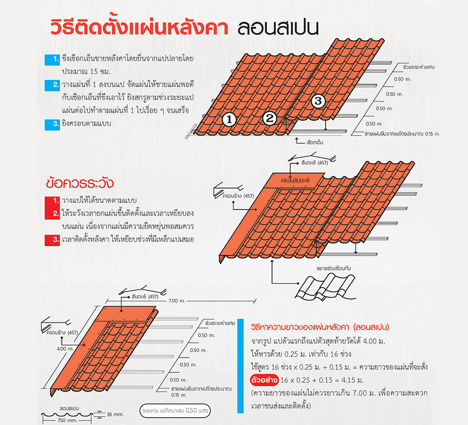 วิธีติดตั้งแผ่นหลังคาลอนสเปน
