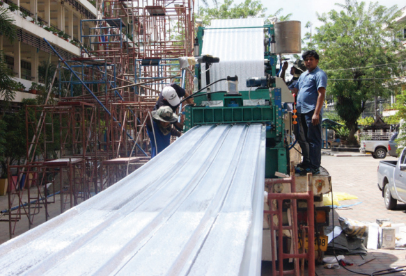 บริการรีดแผ่นขึ้นรูป Metal Sheet หน้างานของเรา จะใช้ในกรณีที่ลูกค้าต้องการผลิตแผ่นที่มีลักษณะความยาวเกินกว่าที่จะขนส่งได้ เช่น แผ่นที่มีความยาว 20 เมตรขึ้นไป